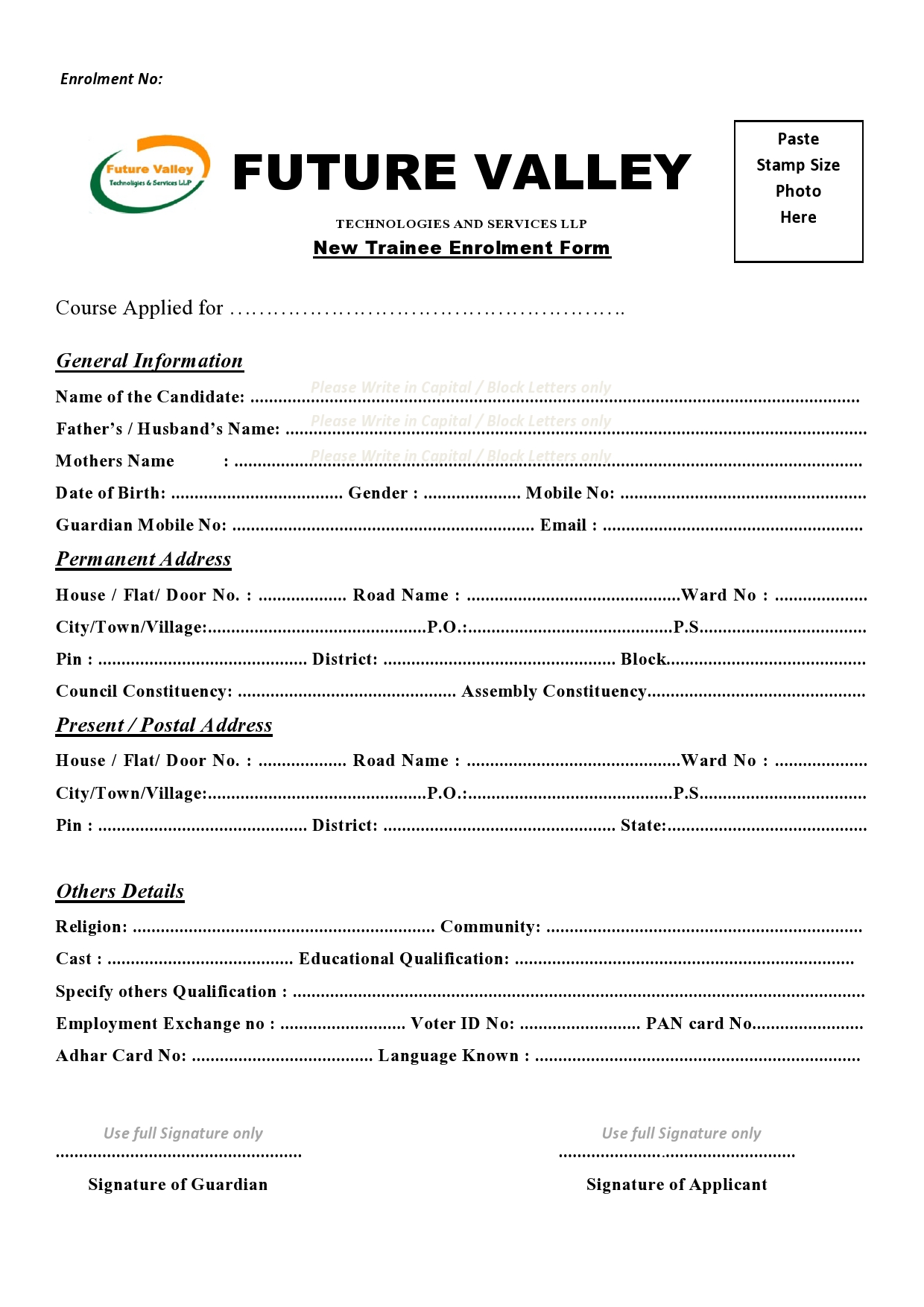 Application Form for Computer & Vocational Courses |